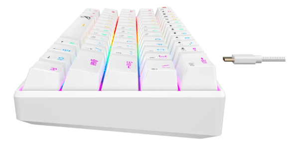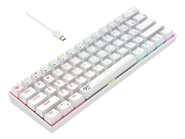 El Havit KB903L es un teclado gamer mecánico compacto 60%, diseñado para quienes buscan rendimiento, velocidad y estilo en un formato minimalista.